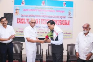 महाविद्यालयातील संरक्षणशास्त्र व स्पर्धापरिक्षा विभागाच्यावतीने ‘कारगिल विजय दिना’ निमित्त मार्गदर्शन व यशस्वी विद्यार्थ्यांचा सत्कार करण्यात आला या कार्यक्रमास अंबाजोगाई चे उपजिल्हा आधिकारी मा.शिवकुमार स्वामी,यो.शी.स.चे सहसचिव प्रा.एस.के.जोगदंड, मा.गणपत व्यास सर,प्राचार्य रमेश सोनवलकर, उपप्राचार्य.डॉ.प्रविण भोसले, प्रा.बाबासाहेब सरवदे,मेजर एस पी कुलकर्णी उपस्थित होते या प्रसंगी पोलिस उपनिरीक्षक पदी नियुक्त झालेले श्री.सिद्धांत मस्के व परिवार,श्री. नरेंद्र शिंदे यांचे भाऊ ,श्री.बळीराम जोगदंड(Indian Army) श्री.सुंदर देवकते (आरोग्य विभाग )यांचा सत्कार करण्यात आला या प्रसंगी यशस्वीविद्यार्थ्यांनी मनोगत ही व्यक्त केले.